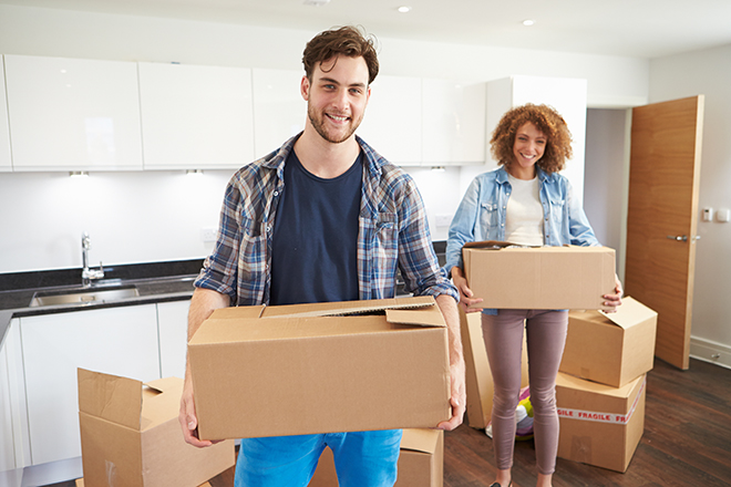 Couple Moving Into New Home And Unpacking Boxes