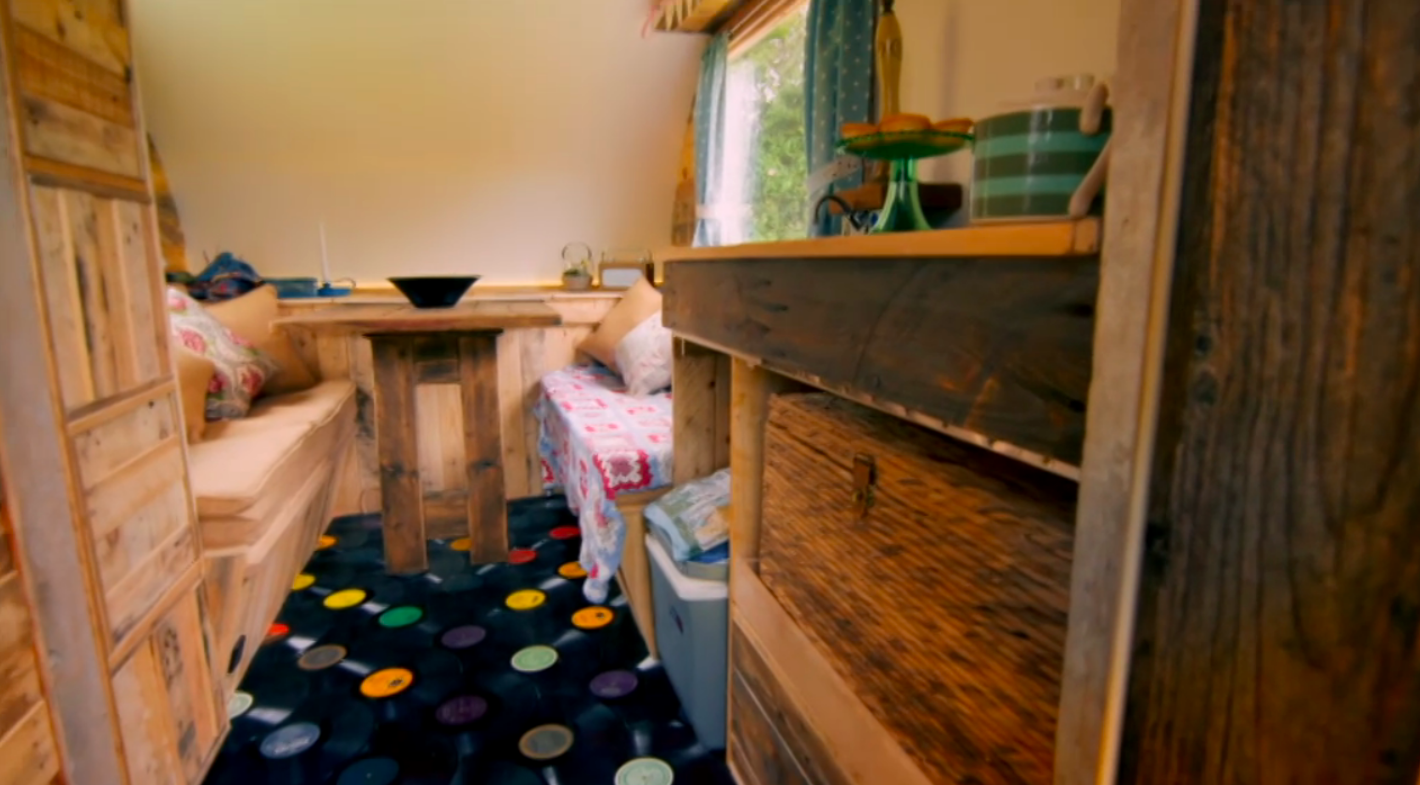 Upcycling and Recycling is all the rage right now. It’s a cheaper alternative to buying something brand new, and more than often you have a one-off unique piece that nobody else has, which obviously gives you the ‘cool factor’. When Carwyn and his wife from Aberystwyth had their fourth child, they were strapped for cash and needed a well earned summer holiday. Rather than spend the money on a small get-away for all the family, Carwyn decided something that they could use again and again would be more sensible, and so brought a £120 trailer. From this, he built his family their very own caravan which is made exclusively from second hand and salvaged materials, creating something that is uber-cool. With 3,000 old CDs on the side, a floor made from old vinyl records and even a toilet made from recycled mobile phones, the caravan is undoubtedly unique and environment friendly- it even has a composting toilet! In total, Carwyn spent £600 on materials. Total cost of caravan= £720, memories made= priceless.