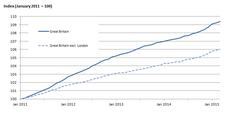 The Office for National Statistics this morning released their private rental price index for January to March 2015, and the results unsurprisingly show price rises across the board. The ONS rental price index series started in 2011 and has seen small but gradual increases ever since.