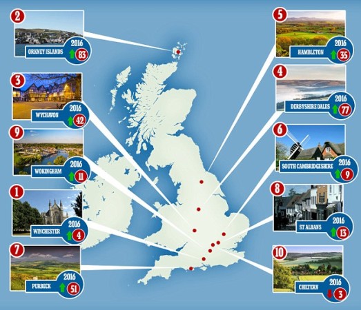 The South East dominated the annual list produced by Halifax, although the north of the country was also well represented, particularly in the top 10 places.