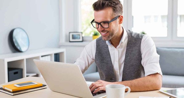 ‹ Return to Young happy designer working on laptop from home – freelance con