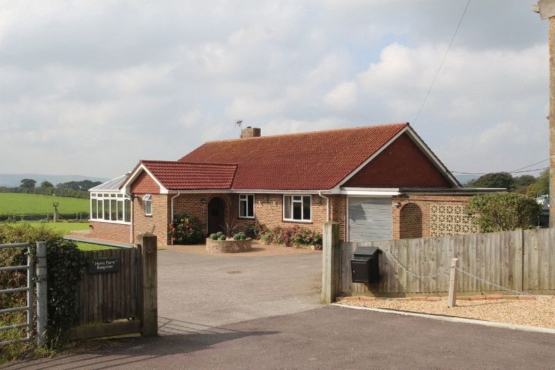 Home Farm Bungalow is approached over a shared private leading to a parking area and integral garage The spacious property measuring 1924ft²(178.7m²) comprises an entrance hall with cloaks cupboard, cloakroom and doors to the sitting room with a Sussex Winkle Stone fireplace and mantle with a bay window enjoying the far reaching views to the south. A Conservatory enjoys a double aspect and has doors that open on to the terrace. The Dining room has a bay window to the south and a hatch to the kitchen/breakfast room which is fitted with a breakfast bar and a range of wall and base units with worktop over and inset stainless steel sink and gas hob. Appliances include an electric Bosh double oven and dishwasher. The utility room has a range of fitted units, space for appliances and door to the study. There are three double bedroom ( two have fitted wardrobes) and a bathroom with shower cubicle. An attached garage is accessed externally and has an office area to the rear.